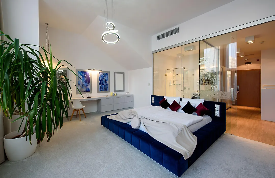 Oprócz takich udogodnień jak sejf osobisty i czujnik dymu, obiekt noclegowy jest wyposażony w żelazko z deską do prasowania i klimatyzację, a także takie udogodnienia rozrywkowe jak TV i telewizja satelitarna. Oprócz sofy i biurka do pracy, we wnętrzu znajduje się również okna dźwiękoszczelne. W łazience znajdują się oddzielna toaleta i prysznic, suszarka do włosów i ręczniki.
